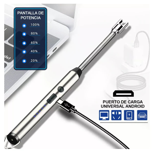 Olvídate del gas, los fósforos y los encendedores desechables. Este encendedor eléctrico recargable es una solución moderna, segura y ecológica para todas tus necesidades de encendido en casa o al aire libre. Ya sea que cocines con estufa a gas, prepares un asado, enciendas velas o salgas de camping, este encendedor te ofrece potencia, durabilidad y comodidad con solo presionar un botón.