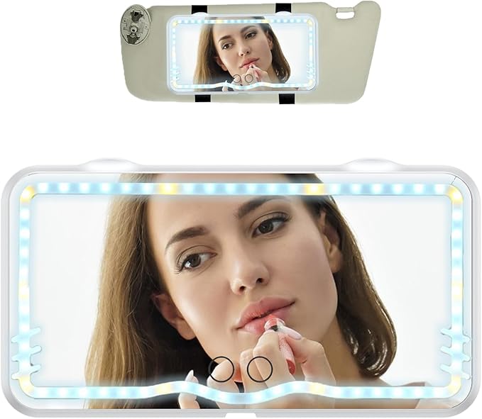 Diseñado para mujeres modernas, prácticas y activas 👜👩💼, este espejo se ajusta fácilmente a la visera 🚘 del auto y cuenta con iluminación LED blanca neutra 💡 que simula la luz natural 🌤️ — ideal para un maquillaje preciso, sin sombras ni errores.