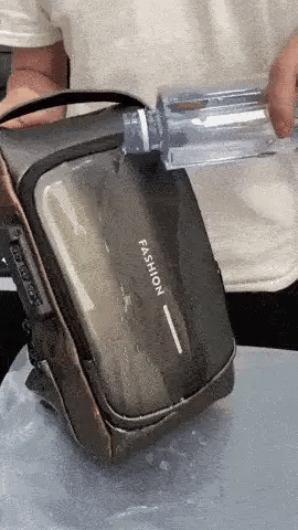 Material repelente al agua, ideal para proteger pertenencias en días lluviosos.