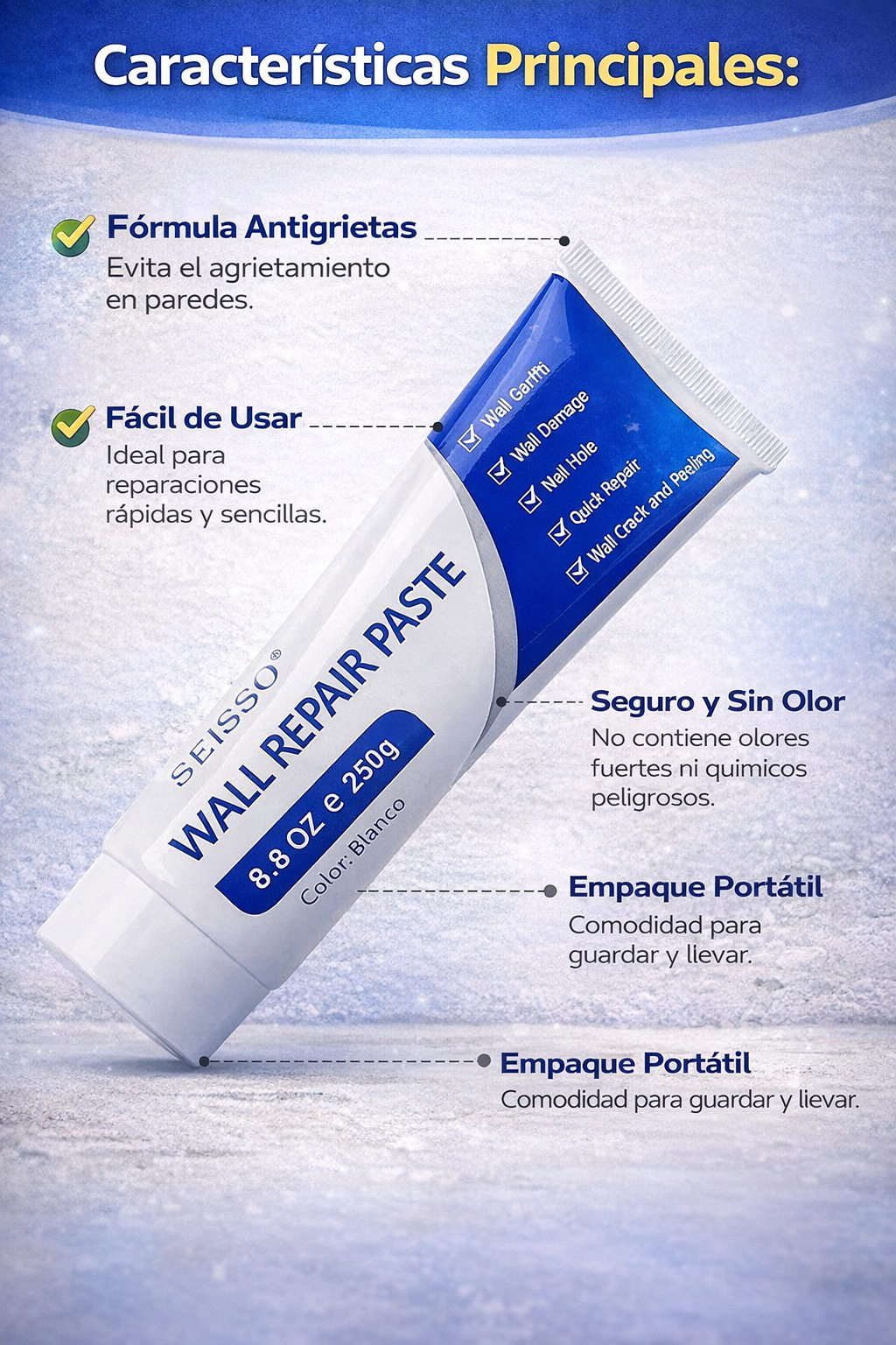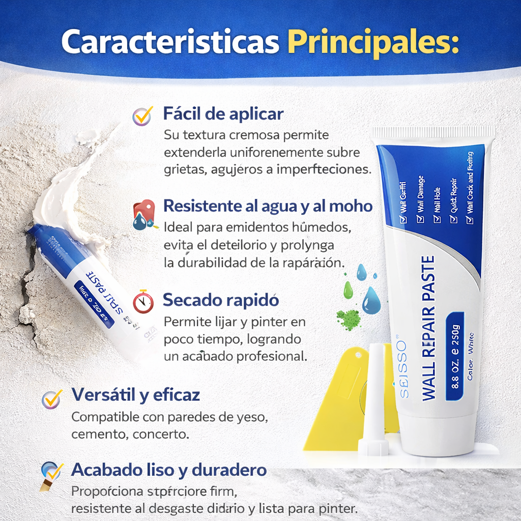 ¿Tu pared tiene grietas, agujeros o imperfecciones que arruinan el aspecto de tu hogar? Con la Pasta Selladora de Grietas para Pared, puedes restaurar tus paredes de forma rápida, fácil y sin necesidad de herramientas profesionales.