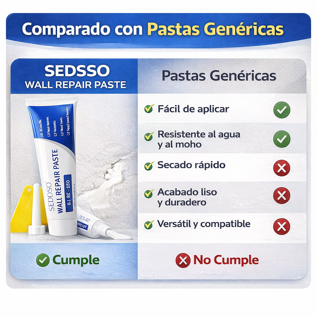 A diferencia de productos genéricos, esta pasta no se cuartea ni se despega con el tiempo. Una vez seca, permite lijar y pintar fácilmente, logrando un acabado liso, firme y duradero que se integra perfectamente con la pared original.