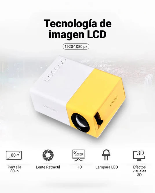 Olvídate de los televisores caros y las pantallas pequeñas de los dispositivos móviles. Con este proyector, disfrutarás de imágenes nítidas y vibrantes en una pantalla más grande, ¡donde sea y cuando sea!