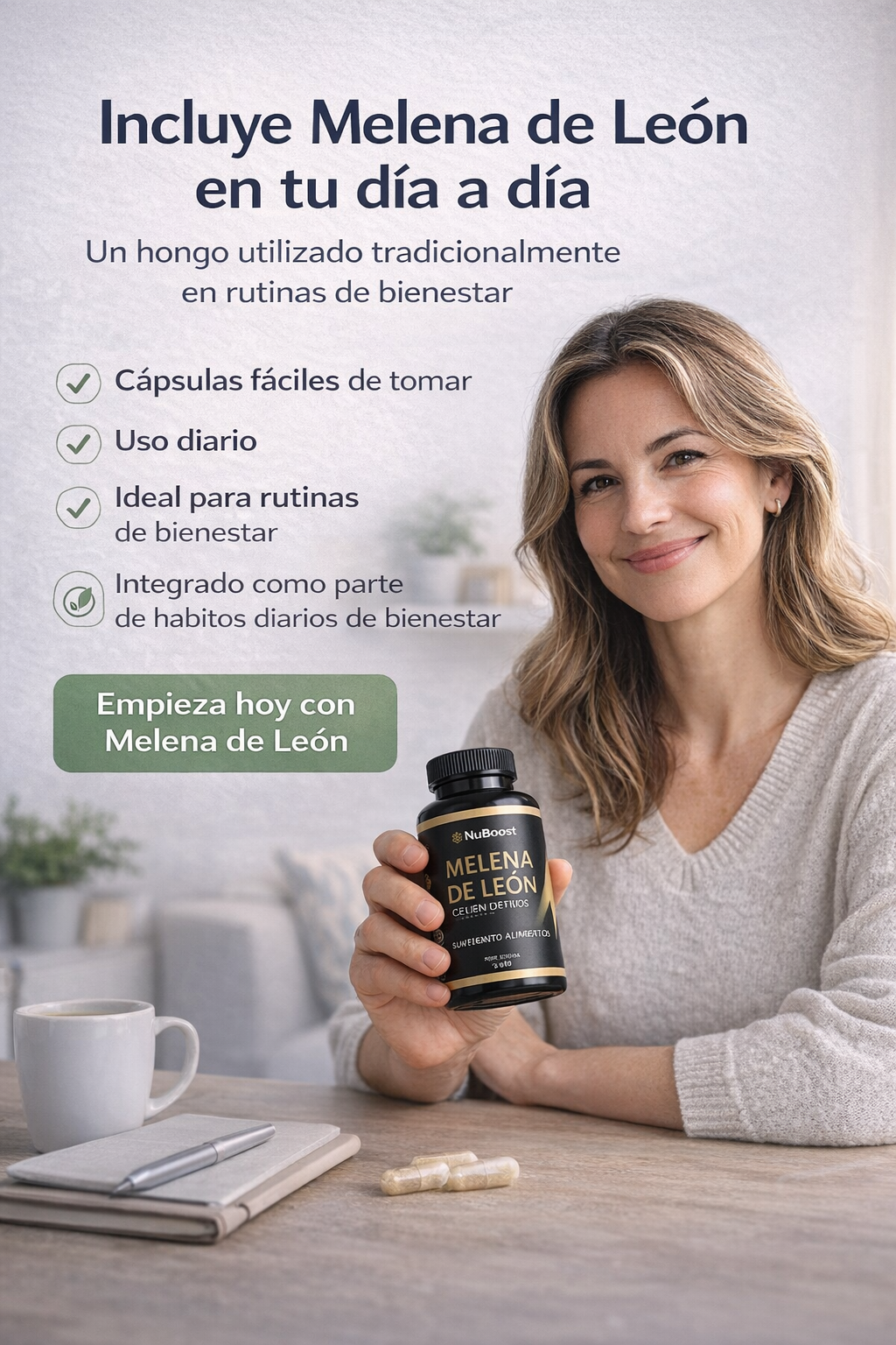 Melena de León 1000 mg NuBoost – 180 Cápsulas | Claridad y Enfoque Mental