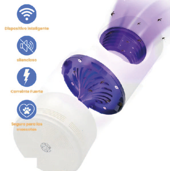 Facil y practico de usar. Esta trampa de mosquitos los atrae con su luz ultravioleta UV para después succionarlos con el ventilador que incluye y atraparlos en su trampa. El ventilador en la trampa para mosquitos los chupa, con la jaula a prueba de fugas combinada.- Es ligero y no libera ningún mal olor, humos peligrosos o sustancias letales en tu entorno vital. Ideal para proteger a los niños y adultos de los riesgos de los mosquitos. Seguro para humanos y mascotas.